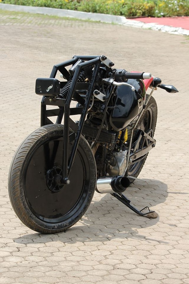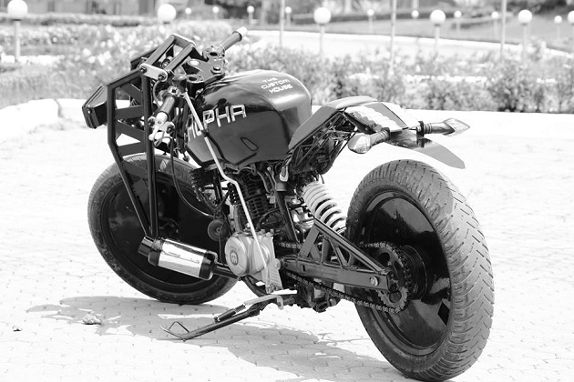 Громадные литеры «ALPHA» на топливном баке, масса переделок и полная неузнаваемость. Кто это столь мастерски закамуфлировал свое прошлое? Не поверите — Bajaj Pulsar 220! Построила его компания The Custom House. Мастера явно находились в хорошем настроении и под действием сильнодействующих местных веществ.