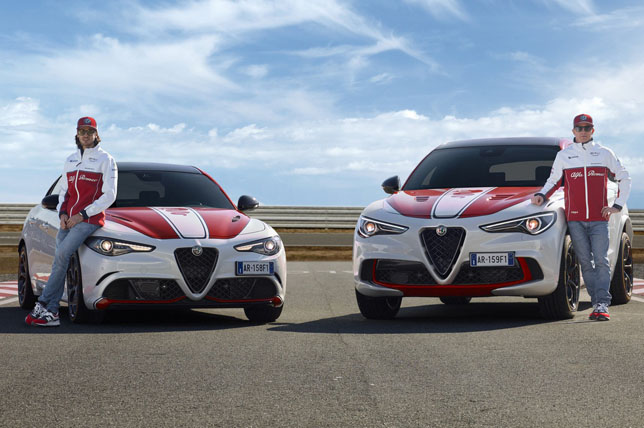 Новинки представили гонщики команды Кими Райкконен и Антонио Джовинацци, а сами машины выпущены ограниченной серией и выкрашены в такие же бело-красные цвета, как и Alfa Romeo Racing C38. Помимо цвета, в спецверсиях есть и другие отсылки к команде Формулы 1. Так обе машины оснащены карбон-керамическими тормозами с красными тормозными суппортами и титановой выхлопной системой Akrapovic, которую настраивали инженеры команды. Кроме того, седан Giulia получил карбоновую крышу.