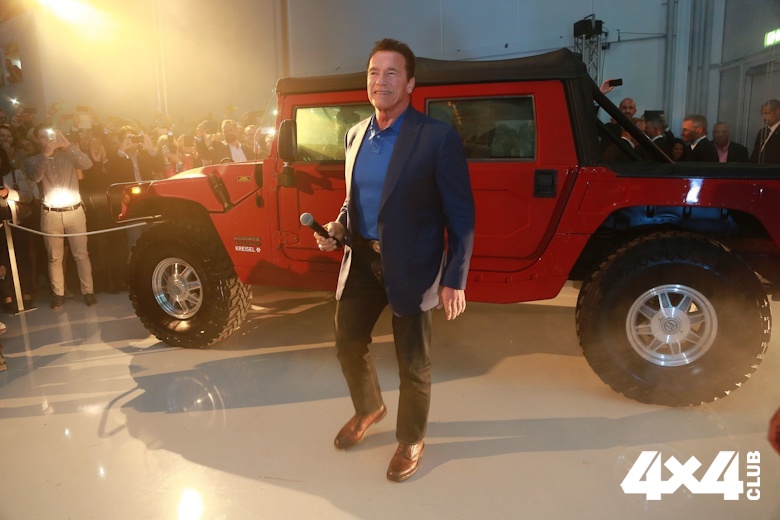 Известный своей страстью к внедорожникам Hummer знаменитый актер Арнольд Шварценеггер получил «электрофицированный» вездеход Н1, построенный для него компанией Kreisel. «Железный Арни» лично представил машину во время открытия нового центра исследований и разработок фирмы Kreisel.