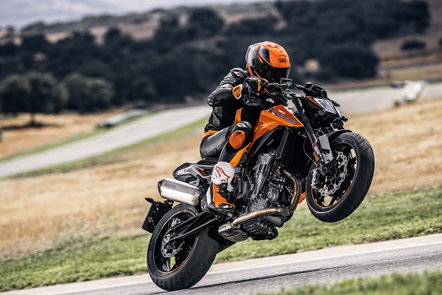 KTM 790 Duke оснащен компактным рядным «твином» LC8c объемом 799 «кубиков» и развивающим 105 л.с. и 86 Нм. Двигатель заключен в традиционную для KTM стальную раму типа «птичья клетка» и является частью силовой структуры. Подвеска, разумеется, от WP – вилка с перьями диаметром 43 мм и задний моноамортизатор. Байк оснащен светодиодной оптикой, TFT-приборкой, ABS, работающей в наклоне, трэкшн-контролем, лонч-контролем и двусторонним квикшифтером. В общем, ready to race!