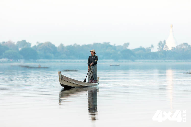 Рыбак на реке Иравади. Как мы уже говорили, в Бирме всё наоборот,