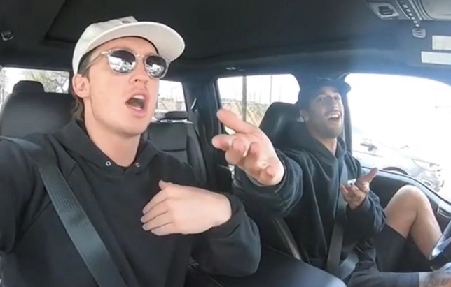 Даниэль поделился в социальных сетях коротким видеороликом, где он вместе с другом вдохновенно исполняет песню Little Lion Man его любимой британской группы Mumford and Sons. Оригинал звучит из динамиков автомобильной аудиосистемы, поскольку всё происходит на ходу, а Риккардо и его пассажир громко поют в унисон, словно они не на машине едут, а весело проводят время в караоке-баре.