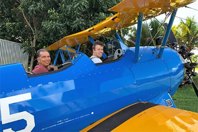 Зимние каникулы пара весело проводит в Бразилии, но сегодня камера смартфона Келли запечатлела несколько необычное событие: похоже, Даниил начал осваивать лётные навыки. На снимках видно, как он под руководством инструктора изучает органы управления довольно древнего биплана, похожего на американский Stearman Model 75, который производился в середине 30-х годов прошлого века, и готовится к полёту.