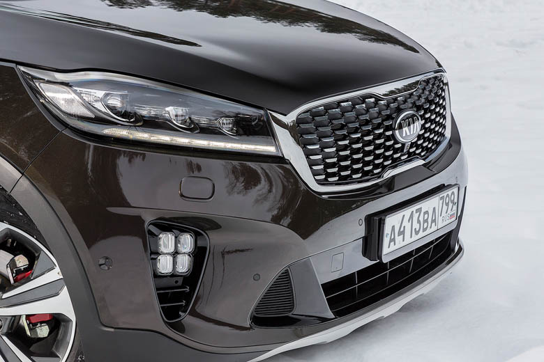 Внешне Sorento Prime, как и прежде, пытается выделяться «носом тигра», спрятанным дизайнерами в контуре решётки радиатора. Честно говоря, эта стилистическая концепция уже порядком надоела и замылила взгляд, но других ярких элементов у кроссовера всё равно нет. Непонятно, зачем в KIA так упорно пытаются привязать решётку к зоологическим ассоциациям, ведь похожа она вовсе не на нос хищника семейства кошачьих, а на головку электробритвы. Да и вообще, хромированных тигриных носов не бывает. Внутри автомобиль значительно веселее. Интерьер располагает и расслабляет. Он делает всё, чтобы быть приятным глазу и на ощупь. Когда я говорю о расслаблении, это вовсе не метафора. Посмотрите, к примеру, как широко разлёгся на передней панели экран. Он вытянулся как кот на солнцепёке. А когда перед глазами потягивающийся ленивый кот, то и сам ты невольно сбрасываешь напряжение. При этом мультимедийный экран кроме терапевтических функций хорошо выполняет и основные, поскольку расположен в соответствии со всеми канонами эргономики. Жаль, что блок климата не следует той же концепции и упрятан так низко, что заставляет метаться взглядом по поверхности в поисках нужной кнопки.