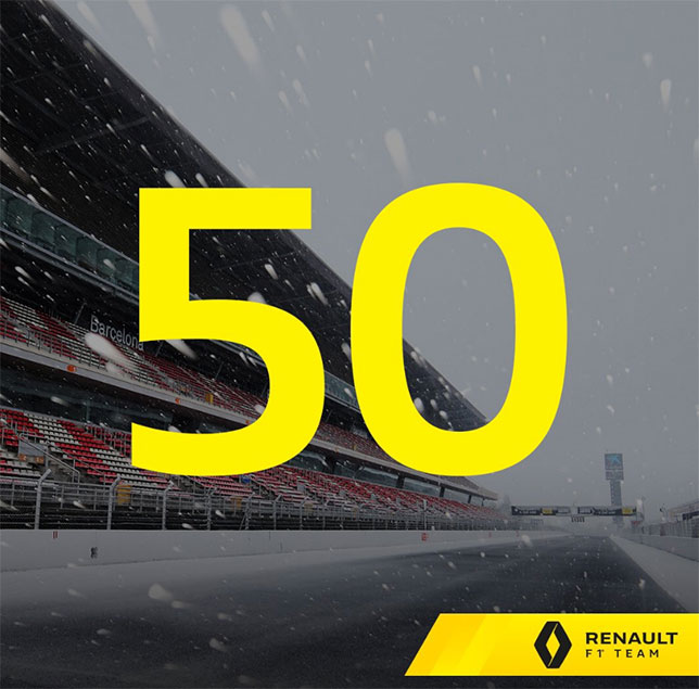 Сегодня пресс-служба Renault разместила на своих страницах в социальных сетях зимнее фото другой трассы, но не для того, чтобы показать, как она выглядит в это время года, а чтобы напомнить всем: до старта тестов в Барселоне остаётся 50 дней!