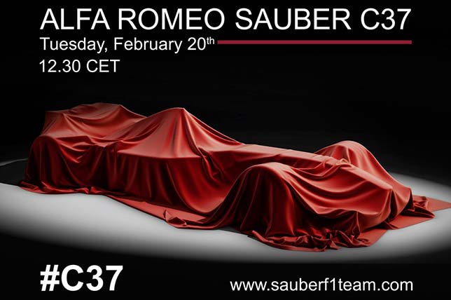 В 14:30 по московскому времени на своём официальном сайте новую C37 покажет команда Sauber, хотя её раскраска и состав пилотов были подтверждены ещё в декабре, на церемонии в Милане, посвященной началу сотрудничества Alfa Romeo и Sauber.