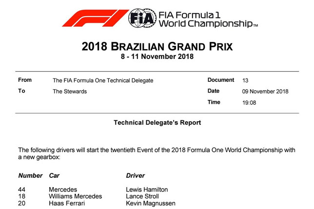 В FIA подтвердили замену коробок передач на шести машинах. Коробки у Льюиса Хэмилтона, Лэнса Стролла и Кевина Магнуссена прошли шесть этапов подряд и заменены на новые без штрафных санкций.