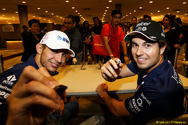На автодроме Яс-Марина за несколько часов до старта гонки прошла встреча гонщиков команд Формулы 1 с болельщиками, в том числе в ней приняли участие пилоты Force India Серхио Перес и Эстебан Окон, для которых этот сезон прошёл очень удачно.