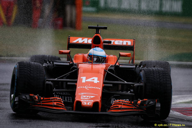 Фернандо Алонсо: «Квалификация проходит совсем не так, как ожидалось, но решение за FIA, мы полностью доверяем им в этом вопросе. Я в любом случае буду стартовать последним, так что не вижу проблемы в том, чтобы больше сегодня не выезжать. (смеется)
