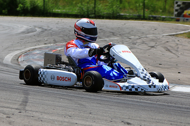 Инженеры немецкой компании Mach1 в сотрудничестве с Bosch при поддержке FIA разработали электрический карт, оснащённый двигателем мощностью 20 кВт, источником питания для которого является 48-вольтовая батарея.