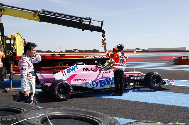 Во второй тренировке Гран При Франции от машины Серхио Переса отлетело заднее левое колесо. В пятницу было опубликовано заявление технического делегата FIA Джо Бауэра, из которого следовало, что во время установки колеса на машину Переса между гайкой и креплением попали обломки, что, скорее всего, привело к ошибочной индикации о том, что гайка затянута и зафиксирована должным образом.