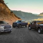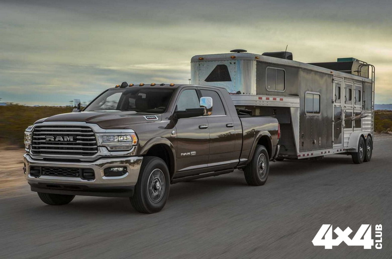 Мощность флагманского дизеля Cummins даже немного ниже — 400 сил. Зато рядная «шестерка» объемом 6,7 литра выдает колоссальный момент в 1356 Нм. Это является рекордом в классе тяжелых пикапов: для сравнения, на Ram 2500/3500 прежнего поколения аналогичный дизель выдавал до 1261 Нм момента, а дизель V8 Duramax 6.6 на Chevrolet Silverado 2500/3500 выдает до 1234 Нм. Новая версия дизеля Cummins получила измененный блок цилиндр и чугунную головку, более легкие и прочные поршни, а также улучшенный турбокомпрессор с переменной геометрией. Этот двигатель работает в паре с шестидиапазонной автоматической коробкой Aisin AS69RC. Существует и дефорсированная версия дизеля мощностью 370 сил: она выдает момент до 1152 Нм, и агрегатируется с другим «автоматом» той же фирмы — модели 68RFE. Предлагаются как заднеприводные пикапы, так и версии с приводом на все колеса: в зависимости от модификации, они оснащаются раздаточными коробками с механическим либо электрическим управлением.
