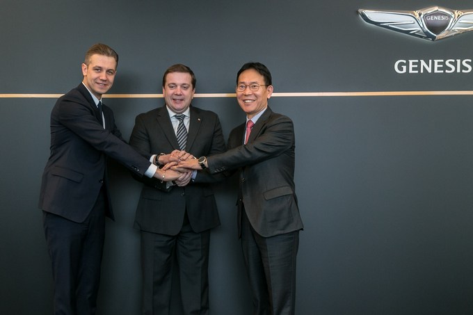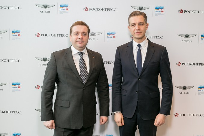 6 февраля в Москве состоялась торжественная церемония передачи автомобилей Genesis G80 организаторам Российского инвестиционного форума в Сочи. В церемонии приняли участие директор Фонда «Росконгресс» Александр Стуглeв и управляющий директор «Хендэ Мотор СНГ» Алексей Калицев.