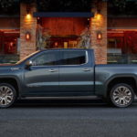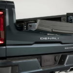 В новом пикапе облегчен не только кузов. Двери, капот и задний откидной борт выполнены из алюминия, что позволило большому траку «похудеть» сразу на 163 кг. Сам откидной задний борт тоже заявлен как уникальный. Он открывается сервоприводом и имеет встроенную складную секцию, которая работает как подножка, скамейка, стол или упор для длинного груза. Такой задний борт доступен только для Sierra.