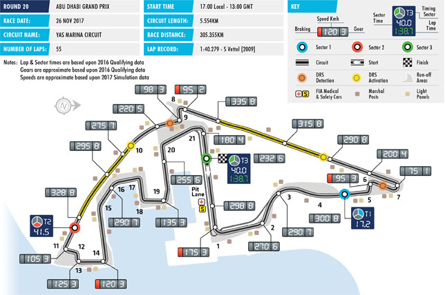 Перед началом Гран При Абу-Даби в FIA подтвердили изменения на трассе Яс-Марина по сравнению с прошлым годом и расположение зон DRS. Изменений оказалось немного – в 8-м и 21-м поворотах установлены дополнительные барьеры TecPro.