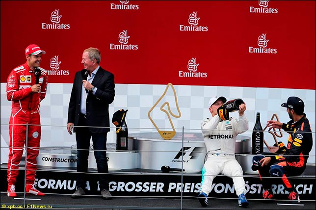 Даниэль Риккардо: Я уже говорил, что мне так показалось, на деле фальстарта не было, но ему явно повезло. Как заметил Себастьян, победу Валттери нельзя преуменьшать – он сработал здорово, но, по-моему, всё было так, как я описал.