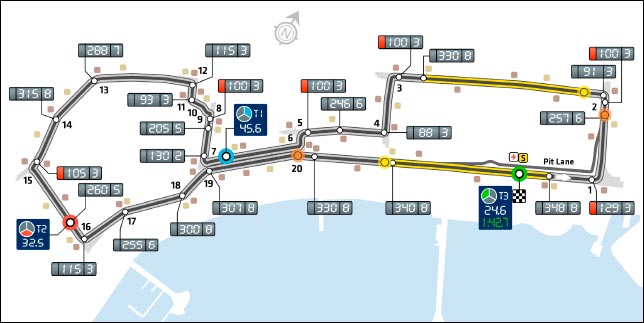Перед началом уик-энда в FIA сообщили об изменениях на трассе в Баку по сравнению с прошлым годом, связанных с увеличением скорости машин, и подтвердили расположение двух независимых зон DRS.