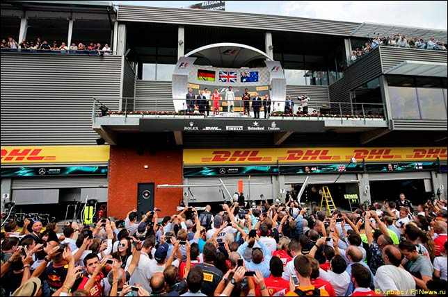 Даниэль Риккардо: Да, всё закончилось здорово! В Бельгии всегда интересно гоняться, но мы приехали сюда без особого оптимизма и в квалификации… Знаете, даже когда я победил здесь в 2014-м, я квалифицировался не лучшим образом, но в этот раз в гонке нам удалось найти резерв скорости, мы обеспечили себе нужную позицию и воспользовались шансом. Я очень доволен, очередной подиум – это всегда здорово!
