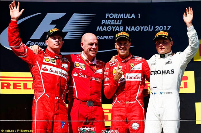 Себастьян Феттель выиграл Гран При Венгрии, одержав 46-ю победу в карьере и четвёртую в сезоне. Кими Райкконен поднялся на вторую ступеньку подиума – у Ferrari второй в этом году победный дубль.