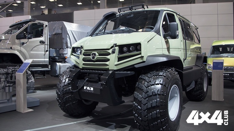 Первая из новинок — вездеход-амфибия «Соболь». Машина способна перемещаться по бездорожью, снежной равнине, болотистой местности, а также преодолевать водоемы. Автомобиль оснащен подключаемым полным приводом с понижающей передачей и блокировками переднего и заднего межколесных дифференциалов.