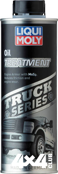 Открывает серию антифрикционная присадка в моторное масло с дисульфидом молибдена. Её оригинальное название — Truck Series Oil Treatment. Ведь для больших автомобилей повышенные нагрузки на двигатель, связанные со сложными условиями эксплуатации — дело, в общем, обычное и негативных факторов может быть много. Это и пыль, попадающая во впускной тракт, и перегревы, вызванные засорением радиатора, и крены на бездорожье, и связанное с ним нарушение подачи масла. Сюда же можно отнести попадание воздуха в маслоприемник турбины и затруднённый слив масла из турбонаддува, что приводит к перегреву турбоагрегата. В результате раньше времени изнашиваются блок цилиндров, коленчатый вал и шатунно-поршневая группа. Именно в таких ситуациях проявляется положительный эффект антифрикционной присадки Oil Treatment с дисульфидом молибдена. Она формирует дополнительный защитный слой, препятствующий непосредственному контакту металла с металлом. Состав предотвращает аварийный износ в условиях высоких температур, высоких нагрузок и масляного голодания.