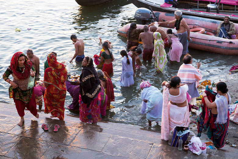 Варанаси — один из древнейших городов мира. Среди его современников — Вавилон и Луксор, с той лишь разницей, что Варанаси не превратился в руины, а продолжает жить. И в эту бурлящую и кипящую жизнь окунаешься прямо на вокзале. Помимо более чем миллионного населения города, здесь постоянно толкутся десятки тысяч паломников, стремящихся попасть в крупнейший религиозный центр Индии. Для приезда сюда у них есть два серьёзных повода. Вся религиозная активность в городе сконцентрирована на городской набережной — гхате. Каждый новый день начинается с того, что тысячи людей с первыми лучами солнца выходят на священные ступени, чтобы совершить омовение в Ганге и очиститься от грехов. Все — от младенцев до стариков — самозабвенно окунаются в воду, зачерпывают полные ладони и пьют в надежде на просветление. Но, пожалуй, главное, для чего в Варанаси приезжают люди со всей страны и чему хотят стать свидетелями любопытные туристы — это кремация. Огонь ритуального огня на гхате Маникарника, по словам местных жителей, не гаснет уже более 2 500 лет. Круглые сутки на здешних ступенях жгут костры, на которых превращают в прах индийцев, способных оплатить ритуал, призванный прервать цикл перерождений. И если по легенде души этих счастливчиков отправляются на небеса, то останки отдают Гангу… Но что действительно стоит увидеть — так это церемонию Ганга Аарти. На закате на главном городском гхате Дашашвамедх появляются брамины с горящими огнём лампадами в руках. Ритуальные движения настолько изысканны, что напоминают танец. Отражающиеся в воде Ганга огни в кромешной темноте ночи божественно красивы.