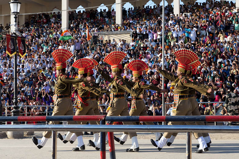 «Хиндустан! Зиндабад!» — в патриотической эйфории скандируют индийцы, заполняющие трибуны вдоль дороги к воротам в Пакистан. В их руках развиваются флаги Индии, а лица украшены национальным триколором. Замолкать нельзя ни на секунду, иначе становится слышен аналогичный клич с противоположной стороны. Действо впечатляет: толпа людей, ведущий, заводящий эту толпу, шествия со знамёнами, зажигательные танцы под популярные индийские песни. Смеркается, и в одну секунду наступает оглушающая тишина. Пришло время начинать ежедневную церемонию закрытия границы. На сцену, а по-другому это и не назовёшь, выходят пограничники в своих парадных костюмах… И начинается полное безумие! Поочередно пограничники двух стран встречаются в практически танцевальном противостоянии, демонстрируют друг другу кулаки, ступни ботинок и выполняют другие оскорбительные па. В этот момент толпу болельщиков с каждой стороны захлёстывает волна патриотизма. Все ликуют и поддерживают своих. Причём в какой-то момент и мы всей трибуной, предназначенной для иностранных туристов, невольно включаемся в скандирование: «Хиндустан! Зиндабад!..» Уже в темноте с обеих сторон опускаются национальные флаги, ворота оглушающе захлопываются, засовы с театральным скрежетом защёлкиваются… Граница на замке!