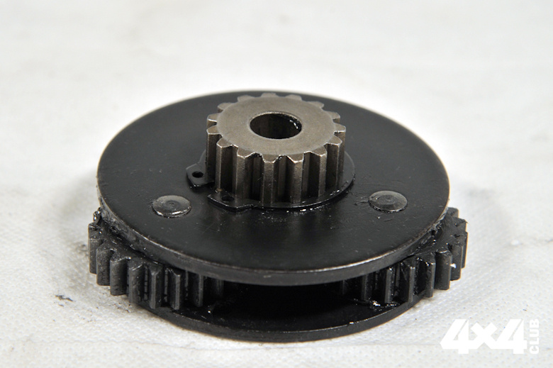 Теперь время разбирать планетарный редуктор. Его литой алюминиевый корпус состоит из трёх частей, средняя из которых одновременно служит ещё общей коронной шестернёй. Остальные шестерни в редукторе стальные. Все рабочие поверхности ровны и аккуратно обработаны, смазки в избытке, всё что должно вращаться – вращается очень легкои плавно, а люфты минимальны.