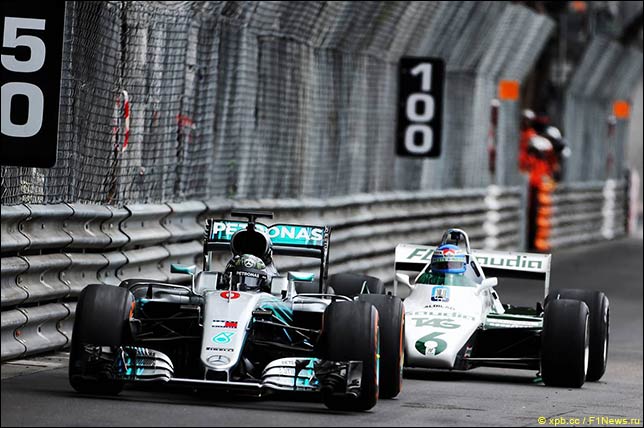 Сразу после окончания первой тренировки два победителя Гран При Монако – Кеке и Нико Росберг – проехали три круга по трассе за рулём легендарных машин – отец сел за руль Williams FW08 с классическим двигателем Cosworth – на этой машине он выиграл титул в 1982 году. Нико пилотировал Mercedes W07 2016 года.