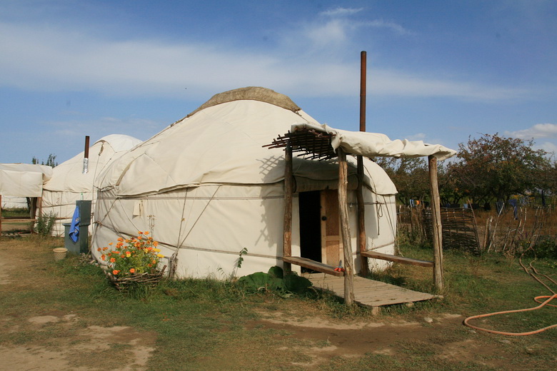 Следующую остановку делаем в местечке под названием Алмалуу. Здесь построен целый посёлок, сплошь состоящий из юрт. Исторически киргизы — кочевой народ, испокон веков мигрирующий вместе со стадами домашних животных.