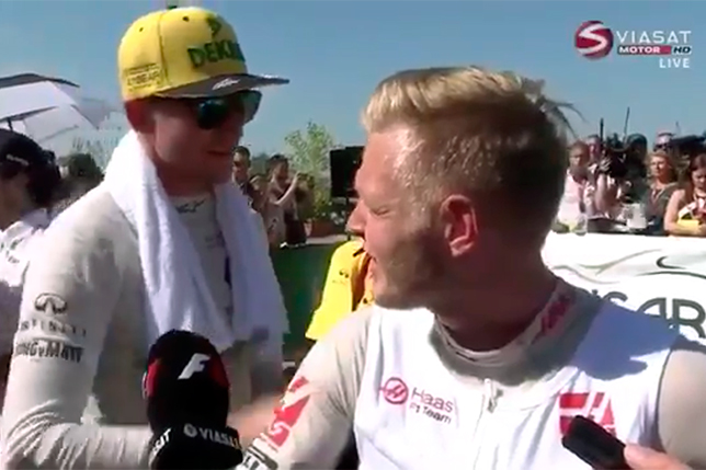После финиша Хюлкенберг подошёл к Магнуссену и сказал тому: «И снова ты самый неспортивный гонщик на стартовой решётке». Ответ Магнуссена был предельно жёстким, воспроизвести его мы не можем. Этот момент попал в прямой эфир скандинавского телеканала Viasat, с которым Кевин в этот момент беседовал.