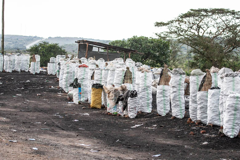 Древесный уголь в Уганде — ходовой товар. Мешки с углём,