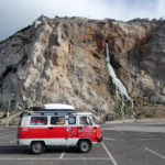 Сам фургон – из последней, модернизированной серии. У него комбинированная приборная панель вместо нескольких отдельных циферблатов, гидроусилитель руля, подогрев сидений и штатное место под магнитолу. Кузов фургона частично обклеили виниловой пленкой красного цвета в стиле Volkswagen Hippie Bus. В салоне установили кондиционер, более комфортные сиденья с регулируемой спинкой, магнитолу в ретро-стиле, навигатор, датчик слежения GPS, снаряжение для кемпинга.