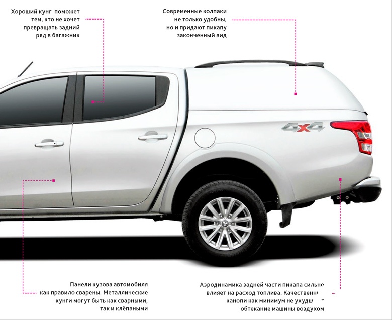 Прежде всего нужно определиться с тем, что вы собираетесь покупать — «кунг», канопи, хард-топ или, может быть, high-roof. Как вы понимаете, я намеренно взял слово «кунг» в кавычки, поскольку это аббревиатура, которая означает «кузов унифицированный нормального (нулевого) габарита» и имеет куда большее отношение к габаритам железнодорожного состава, чем к автомобильным путешествиям. И настоящие кунги — это похожие на вахтовки обитаемые кузова на грузовиках (на ЗИЛ-131, например) или грузовых прицепах, выкрашенные в защитный зелёный цвет. Их скошенные грани перехода от стен к крыше в точности повторяют очертания подвижного состава железных дорог и соответствуют его предельным габаритам на случай, если вдруг придётся поставить этот самый 131-й на платформу и везти через всю страну… Но это к слову. Так вот, чтобы понять, что устанавливать, надо вспомнить, зачем вы приобретали пикап: только ли из-за того, что не хватило денег на обычный внедорожник, или перевозимый вами груз не влезает даже в Chevrolet Suburban? Нам-то проще, мы, во-первых, больше пары бочек никогда в пикапе не возили, а во-вторых, говорить будем о машинах, которые чаще ездят в дальние экспедиции, чем на строительный рынок. За стройматериалами, в конце концов, можно и без кунга…