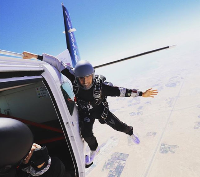 Комментарий к снимку такой: «Это было лучшее воскресное утро в Катаре, я с утра пораньше, уже в шесть, отправился попрыгать с парашютом. Это действительно один из моих любимых видов спорта. Я не большой мастер скайдайвинга, но учусь с каждым прыжком – это моё любимое хобби.