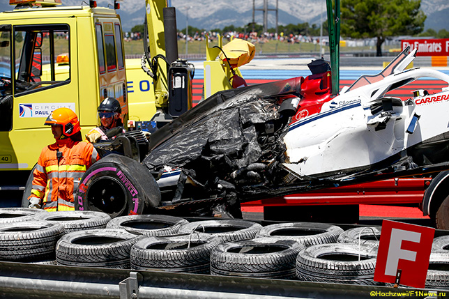 Пилот Sauber Маркус Эриксон пропустит вторую тренировку Гран При Франции. После вылета шведа в первой сессии машина загорелась, и шасси был нанесён большой урон. Команда вынуждена менять шасси, на что потребуется много времени.