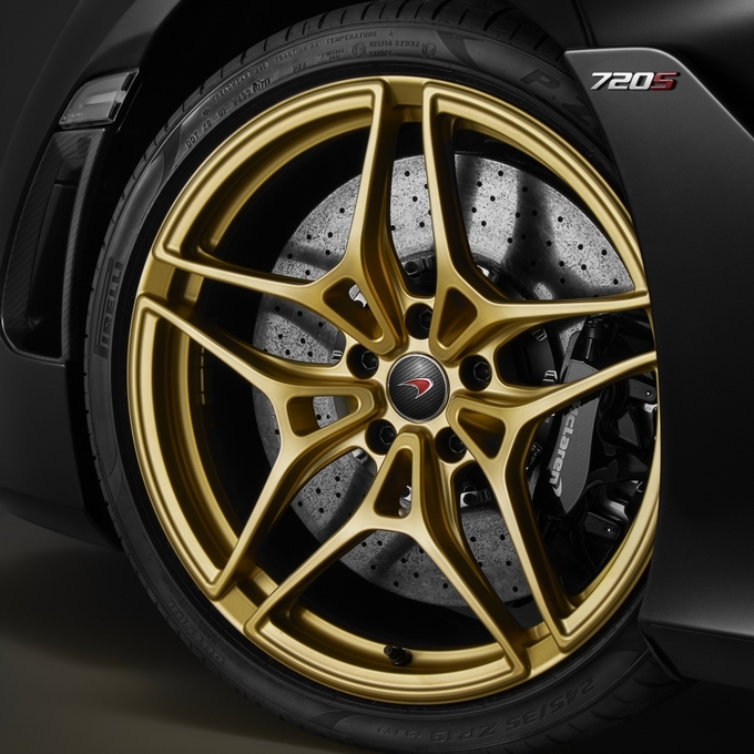 Специально для мотор-шоу в Дубаи дизайнеры Mclaren, а, точнее, сотрудники домашнего подразделения McLaren Special Operations (MSO) придумали черно-золотую версию своей самой быстрой модели «супер-серии» 720S. Спорткар покрасили в черный Zenith Black с матовой финишной отделкой и поставили на золотые колеса. Впрочем, от золота тут только цвет – на самом деле, это сверхлегкий сплав. И в самом деле, эмираты – эмиратами, а колеса снимут – ищи потом ветра в пустыне.