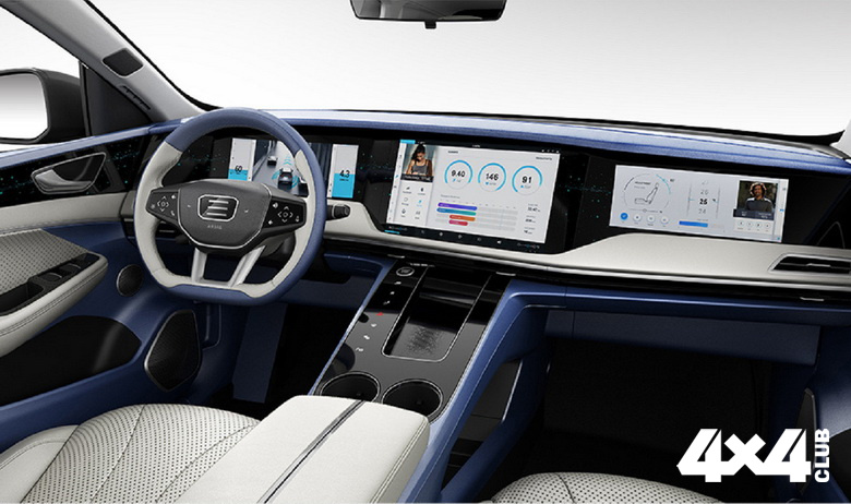 В салоне Enovate ME7 обращают на себя внимание три дисплея, встроенных в переднюю панель. Первый — это цифровая приборная панель (диагональ 12,3 дюйма), второй — мультимедийная система (15,6 дюйма), третий — дополнительный развлекательный экран для переднего пассажира. Общая ширина трех дисплеев — 1460 мм.