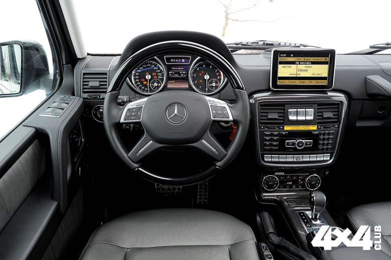 Несмотря на то что список стандартного оборудования W463 сопоставим с другими моделями Mercedes-Benz соответствующего класса, внимание обращать надо не на богатство интерьера, а на особенности эргономики, посадки, обзорности. И на систему климата. Если зимой холодно, проверяем дополнительную помпу, она может выйти из строя. Подтекания крана печки отошли на второй план, а вот перебои в работе электропривода заслонок встречаются. И опять — деталь копеечная, но замена дорогая.