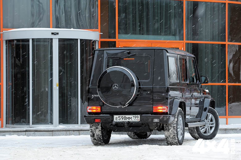 Пятидверный кузов начнёт ржаветь, только если сделан некачественный ремонт или краска процарапана до металла на бездорожье. Кстати, 80% владельцев G-класса никогда не съезжают с асфальта, хотя очень даже могут… У машин с очень большими пробегами встречается недостаток в виде провисших дверей с повреждёнными коррозией петлями. Задняя, пятая дверь проседает ещё и под весом запаски. К слову, чехол для запасного колеса с надписью Brabus стоит 60 000 рублей.