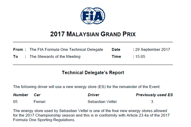 Уже после окончания первой тренировки пришлось вносить изменения и в конфигурацию силовой установки Себастьяна Феттеля – немец получил новый аккумулятор системы рекуперации.