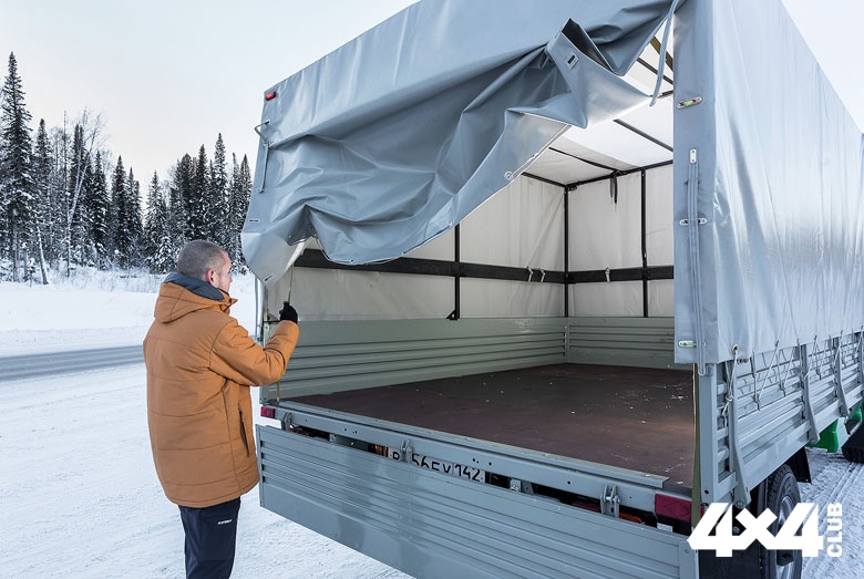Гремят взрывы и тысячи тонн угля ссыпаются к подножью склона. Засуетились БЕЛАЗы с экскаваторами, и нам тоже пора под погрузку. Проверим новый «Профи» кемеровским углём и дорогами. Первое, с чем сталкивается любой, кому хочется что-то положить в тентованный кузов, — сам тент, который надо открыть. Обычно для того чтобы закинуть задний клапан на крышу, используется швабра и эквилибристическая сноровка. В качестве альтернативы швабре в УАЗе предусмотрели ремешки, которые поднимают задний свес, как театральный занавес, к потолку. Потолок, кстати, тоже непростой — полупрозрачный, отчего днём в кузове светло. Мы и дальше увидим немало подобных полезных штучек, которые пригодятся в повседневном использовании. Некоторые из них уазовские инженеры подсмотрели у конкурентов (машины которых, конечно же, были подробно исследованы в процессе создания «Профи»), другие придумали сами. Например, боковины тента, чтобы их не трепало ветром, имеют специальные карманы, посредством которых крепятся к бортам. Сзади под кузовом запираемый на замок ящик. На его крышке расположен задний номер, а внутри поместится разнообразный шофёрский инструмент. Сверху на заднем борту есть скоба, превращающаяся в подножку, когда борт откинут… Тонну в кузове машина чувствует сразу — прыткость и жёсткость подвески моментально исчезают. Зато появляется привычная для грузовика продольная раскачка, напоминающая медленную езду на Коньке-Горбунке. Другая раскачка, боковая, напоминает о грузе при переваливании через гребень посередине дороги. Раскачке препятствуют стабилизаторы поперечной устойчивости спереди и сзади, но в любом случае о высоком центре тяжести забывать нельзя. Одним словом — грузовик. Можно отметить большой задний свес, и внимательные читатели уже предсказали машине рыскание при полной загрузке. Но, во-первых, грузить надо правильно, максимально смещая всё, что можно сместить к передней стенке. Во-вторых, длинный уазовский нос с выдвинутым вперёд мотором — отличный противовес. Даже после загрузки полутора тонн руль не становится ватным. Да, падает динамика, да, в повороты нужно заходить вдвое медленнее, но ведь так происходит на любой гружёной машине.