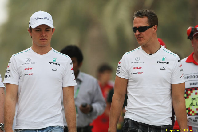 С 2010-го по 2012 годы напарником Нико Росберга по команде Mercedes был Михаэль Шумахер. Нико хорошо отзывается о семикратном чемпионе мира, но отмечает, что всегда стремился одолеть Михаэля.