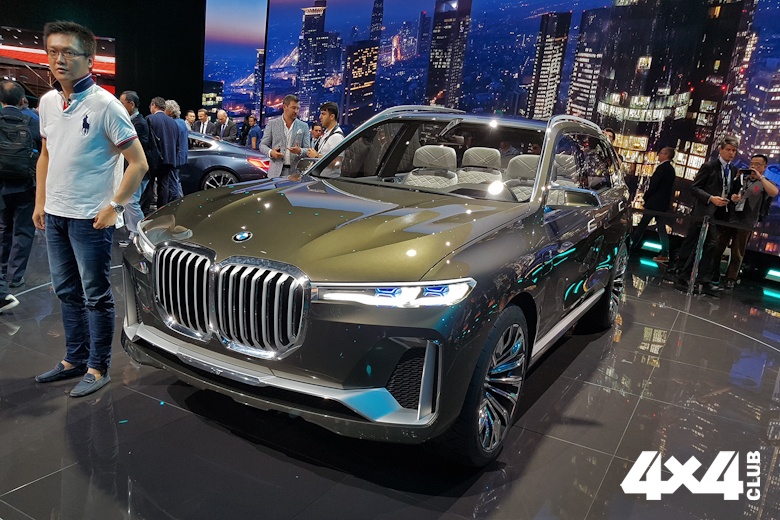 Технической информации о новом BMW X7 пока что мало: о нем можно судить разве что по представленному на автосалоне во Франкфурте прототипу X7 iPerformance. Концепт «икс седьмого» вытянулся в длину более чем на 5,2 метра, и на фоне внушительных габаритов кузова его огромные 23-дюймовые «катки» колесных дисков выглядят не такими уж и большими. Концепт стал очередным полем для дизайнерских экспериментов: во всяком случае, решение передней части большого вседорожника с его экстремально крупной радиаторной решеткой выглядит весьма необычным для баварской марки — равно как и непривычно зауженная передняя и задняя оптика full LED.