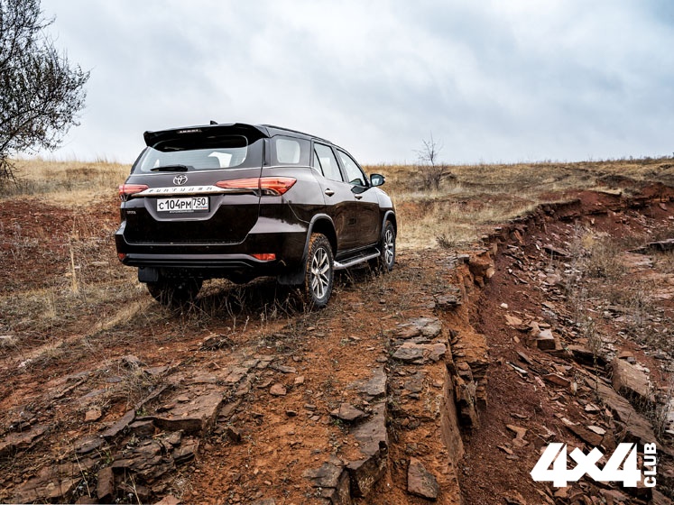 Когда речь заходит о внедорожниках Toyota, само собой возникает слово «рейдовый», что обозначает вездеход, способный не только ползать по препятствиям, но и пролетать над ними. Fortuner именно такой. Рама от пикапа Toyota Hilux считается самой прочной в мире, значит, за геометрию кузова можно не беспокоиться даже в процессе грубой езды. Передняя подвеска аналогична пикапу, но с другими пружинами и амортизаторами. В задней — рессоры заменены на рычаги с пружинами и появился стабилизатор поперечной устойчивости. Всё это сделало машину заметно мягче пикапа — никаких грузовых ноток, а заодно выросла управляемость. Главное — не перекачивать колёса.