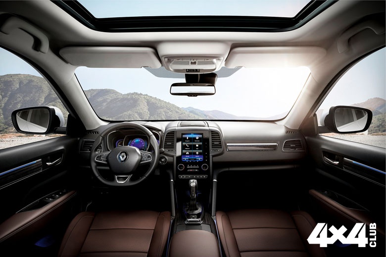 Официально представители Renault относят Koleos к классу городских автомобилей, хотя он и оборудован стандартной для соплатформенников (Nissan Qashqai и X-Trail) системой полного привода All Mode 4×4 с дисковой муфтой подключения задних колёс. У неё три режима — 2WD, 4WD AUTO и 4WD LOCK. Геометрические характеристики довольно-таки скромные: угол въезда — 26°, съезда — 19°, дорожный просвет — 210 мм. Но, пожалуй, главный враг Koleos на бездорожье — его база длиной в 2705 мм. Не добавляет проходимости и заметно больший, чем у младших Duster и Kaptur, вес. Правда, российские версии для большей вездеходности получили полностью отключаемую противобуксовочную систему, а запас прочности у полноприводной трансмиссии таков, что перегреть невозможно ни вариатор, ни муфту привода задних колёс.