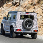 Несмотря на плотную маскировку, в автомобиле угадываются классические черты маленького внедорожника. На фото видно, что новое поколение Jimny сохранит трехдверный кузов и круглые фары головного света.
