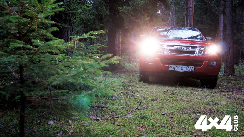 На асфальтированной трассе автомобиль чувствует себя уверенно. Хорошо выходит на обгоны и даже на 100–110 км/ч даёт существенную прибавку к мощности и скорости. Больше 120 км/ч я не разгонялся, так как это противоречит моему мироощущению. Чтобы обогнать фуру, двигающуюся со скоростью 95 км/ч, пикапу не нужны дополнительные стимуляции в виде присадок в топливо и усиленной турбины — реакция на нажатие педали газа ощутимая. Побывав однажды в горах Алтая в конном походе, я был поражён способностью лошадей вышагивать по сложному рельефу, особенно контролировать передвижение всех четырёх ног, длину шага и ставить копыта исключительно в нужные места тропы. У D-MAX с этим тоже всё в порядке. Спереди — пружинная подвеска на поперечных рычагах, сзади же установлена классическая зависимая конструкция — мост на рессорах. Тормоза более чем стандартные: спереди — вентилируемые дисковые (16”), сзади барабанные (15”). Плавная реакция, уверенное торможение — нареканий за всё время не возникло. Выскочивший на красный свет синий Opel GTC на набережной Москвы-реки заставил систему ABS пикапа отработать на всю катушку, равно как и стимулировал экипаж ДПС бросить все дела и ринуться вслед за убегающей иномаркой. А я перевёл дух, получил пару сочувствующих взглядов от свидетелей из попутных автомобилей и аккуратно продолжил движение по улицам города.