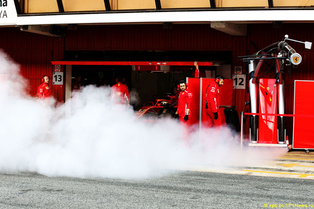 Многие обратили внимание, что на тестах в Барселоне машины с силовыми установками Ferrari выпускают много масляного дыма. Связано это с новыми требованиями технического регламента, которые ограничивают использование моторного масла для увеличения мощности.