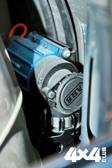 Параллельно я дорабатывал салон и отреставрировал руль. Уже смонтирован спальный модуль. В планах — восстановить уставшие или повреждённые компоненты обшивки. Ночевать в холодное время года помогает обогреватель салона Eberspaсher с датчиком температуры и реле автоматического пуска/выключения в диапазоне +/- 4 градуса от заданной. Установлен инвертор на 600 Вт и выведены две розетки — в салон и багажник. Доработана вибро-шумоизоляция салона (пол, крыша, боковые поверхности кузова), установлена пневмосистема с выводами быстроразъёмных штуцеров под капот и под лючок бензобака. Ресивер небольшой, но для работы инструмента его достаточно. Пневмосистема изначально рассчитывалась на 33″ колёса, поэтому был выбран не очень производительный компрессор Viair 450C, который хорош для скрытой установки и беспрерывной работы, но его производительность для 38″ колёс маловата. Поэтому его сменил двухпоршневой ARB с производительностью 160 л/мин. Теперь процесс накачки колёс не вызывает приступов депрессии и боли. Кстати, из практики: те, у кого неудобный или малопроизводительный компрессор, стараются реже травить колёса на бездорожье, тем самым усложняя себе жизнь.